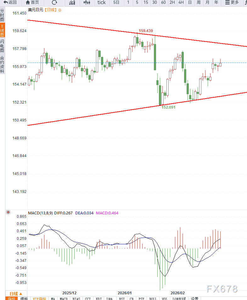 下方支执领先关心155.80,其次为154.50区域,若跌破后者,将削弱短期多头结构。工夫标的方面,RSI处于中性偏强区间,动能尚未参加极点超买;MACD位于零轴上方但柱状图动能照应,默示上行能源旯旮收缩。