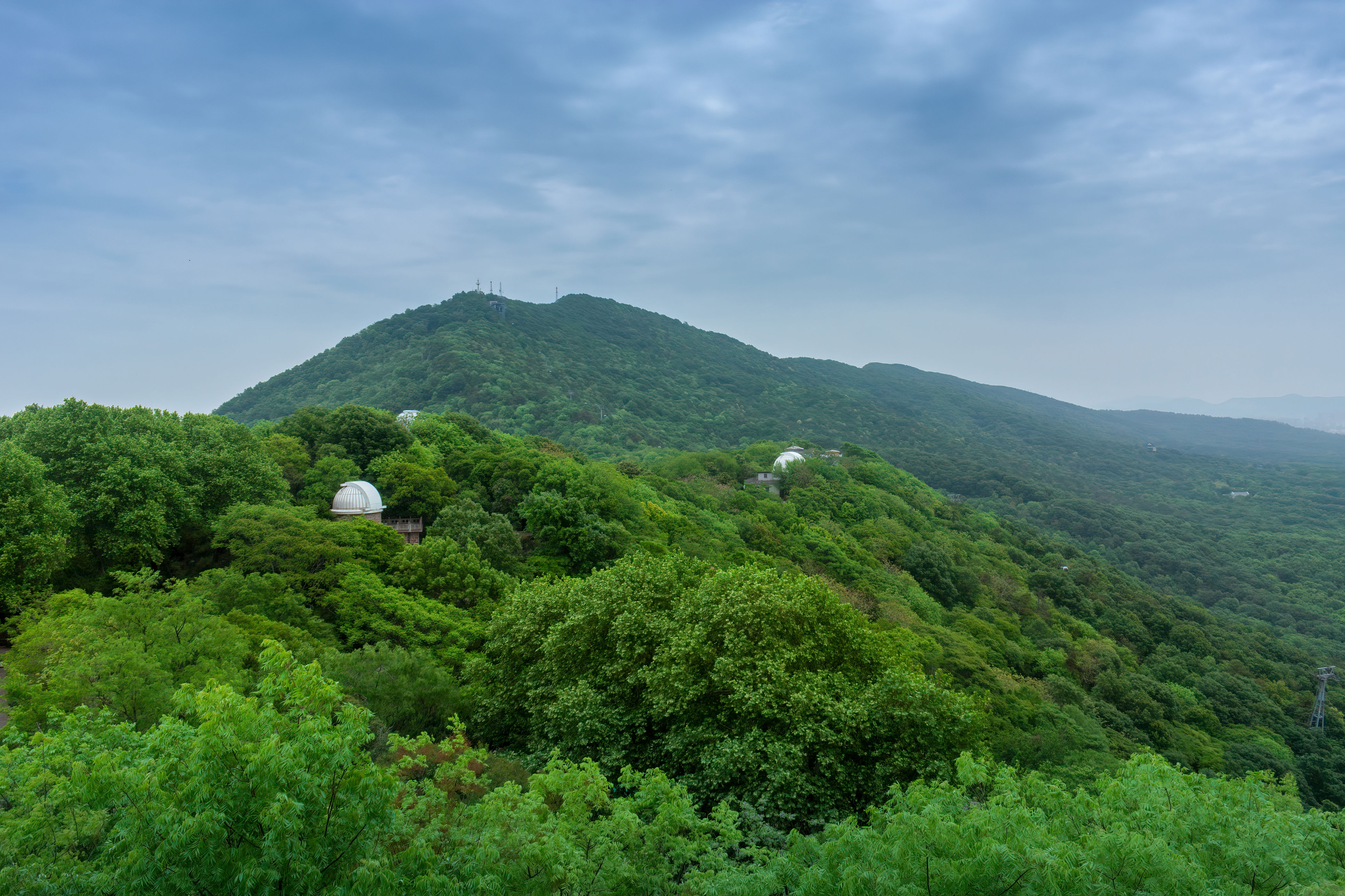紫金山,南京的"绿肺",一座横亘在城市中央的绿色宝库。山势周折盘曲,丛林粉饰率极高,空气簇新,是自然的氧吧。